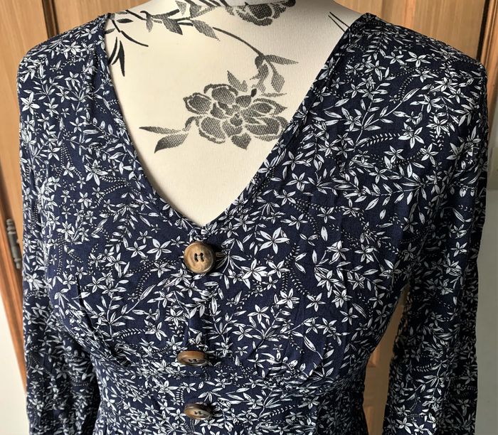 Robe longue marine fleurs blanches taille 36/38 - photo numéro 6