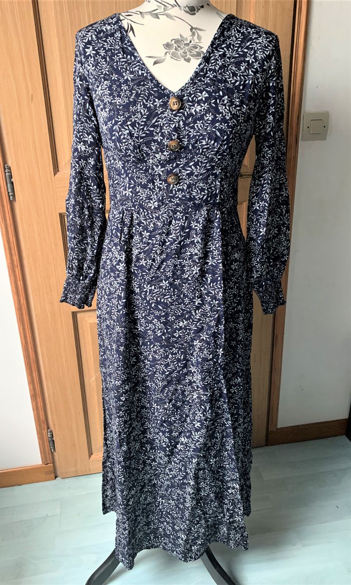 Robe longue marine fleurs blanches taille 36/38 - photo numéro 1