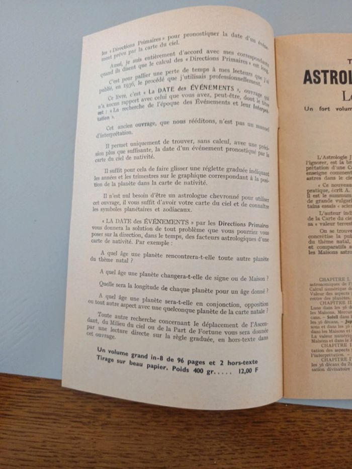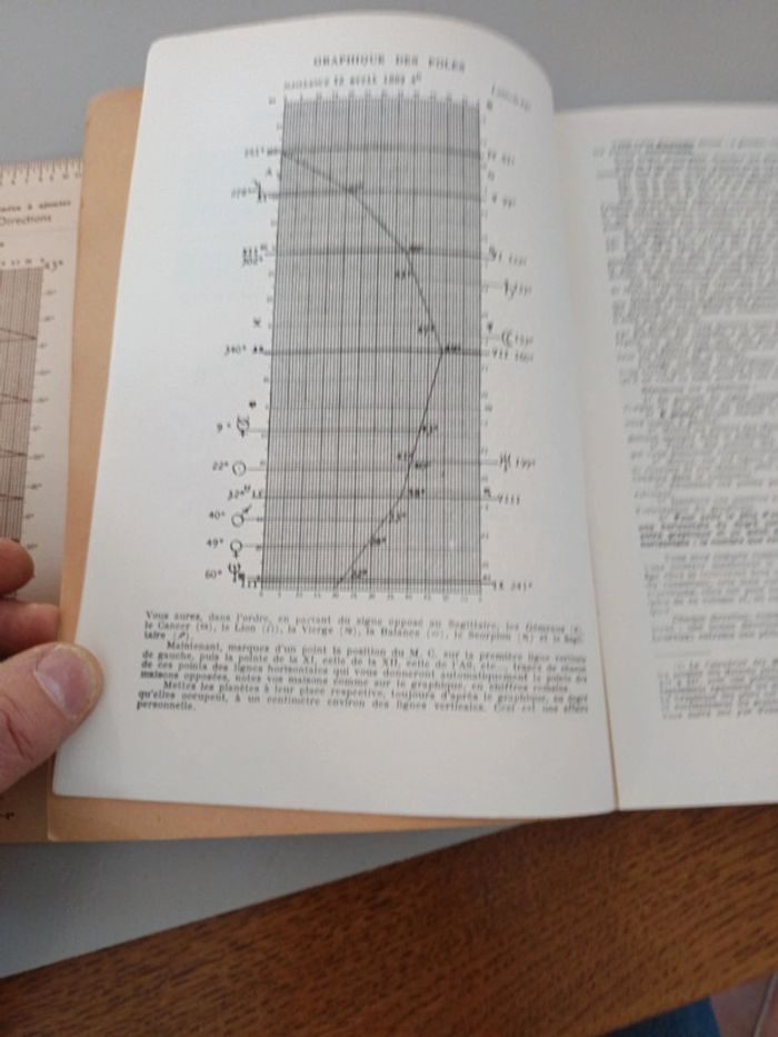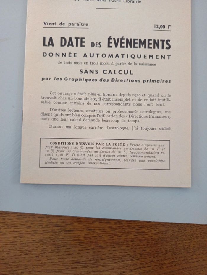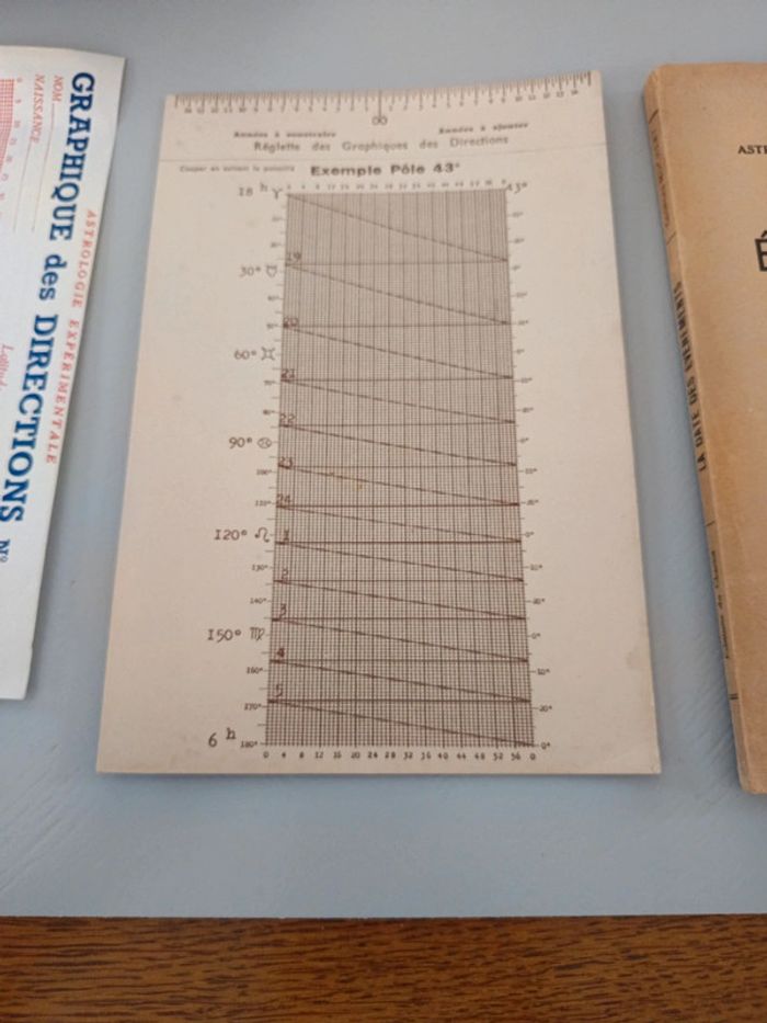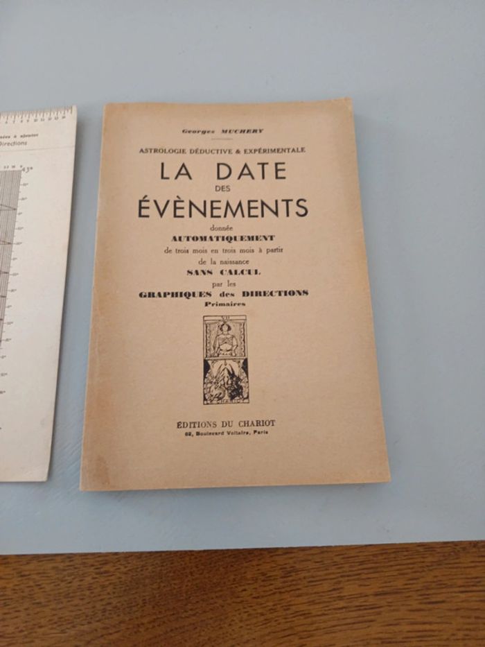 Astrologie deductive & experimentale. Donnée automatiquement de trois mois en trois mois à partir de la naissance sans calcul par les graphiques des directions primaires. Georges Muchery éditions du Chariot 1966. Complet avec le tableau des directions et sa réglette.