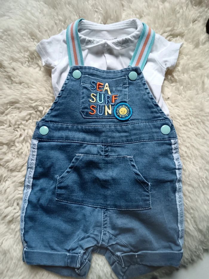 Joli ensemble bébé 3 mois parfait état jamais porté bodie manche courte avec message "je t'aime mon bébé" brodé sur le col trop mignon et petite salopette confortable car toute élastique même les lanières. Bodie sergent major salopette mots d'enfants Mixte