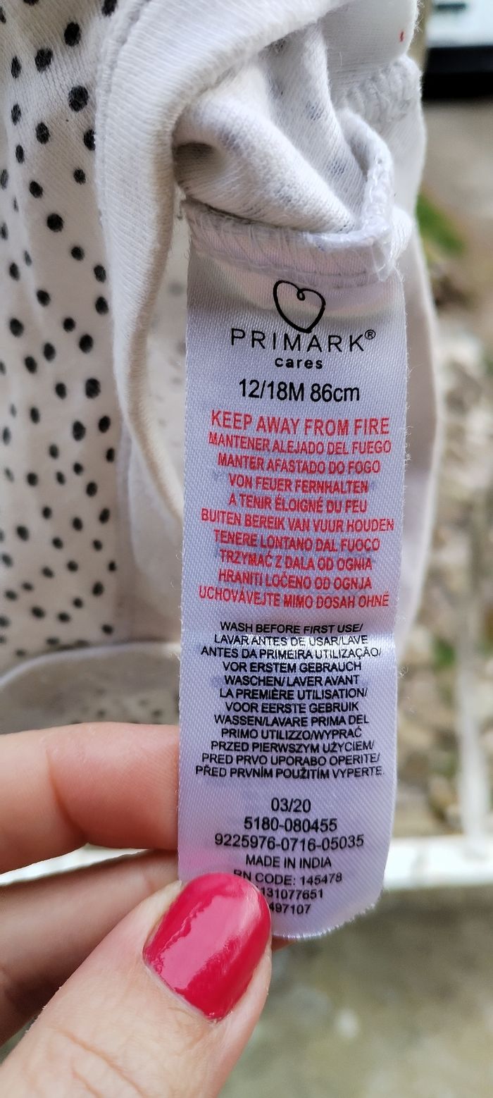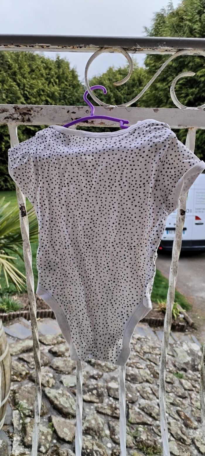 Body à manches courtes blanc avec des pois noir pour fille. Marque Primark. Taille 12-18 mois. Comme neuf. Que mondial relais ou Relais Colis.