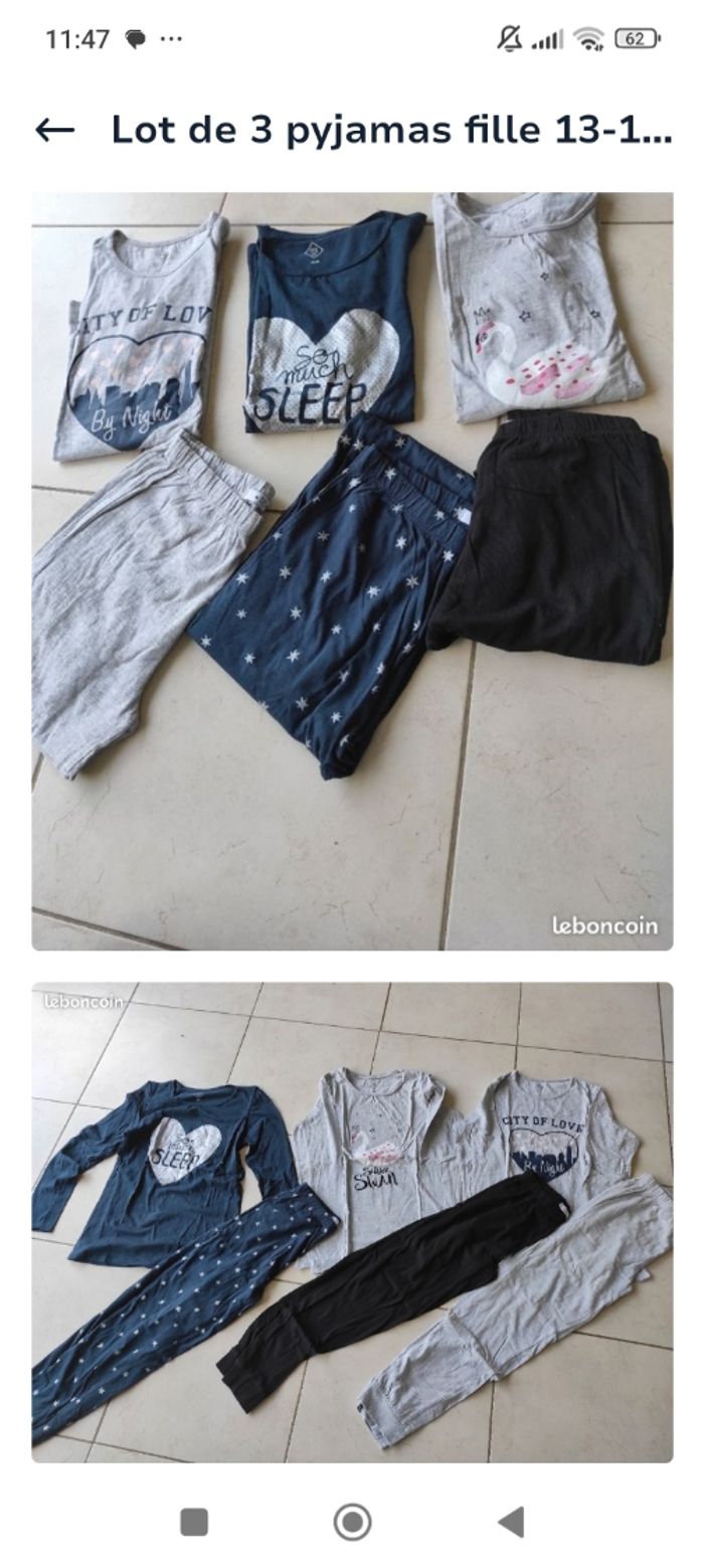 Un pyjama fille ML en coton Taille 13-14 ans Il est neuf Marque tex J'ai un autre lot avec 3 pyjamas 13-14 ans neuf aussi ds une autre annonce je.mets la photo Sinon d'autres habits en 13-14 , xs , s