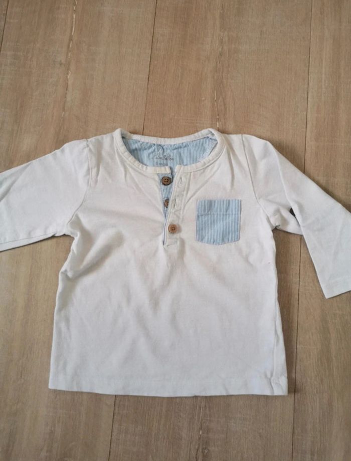 Tous mes articles bébé ici #ldurabebe ou classés par taille dans à propos Très joli tee shirt manches longues idéal mi saison Boutons effet bois Blanc et bleu clair 6 mois