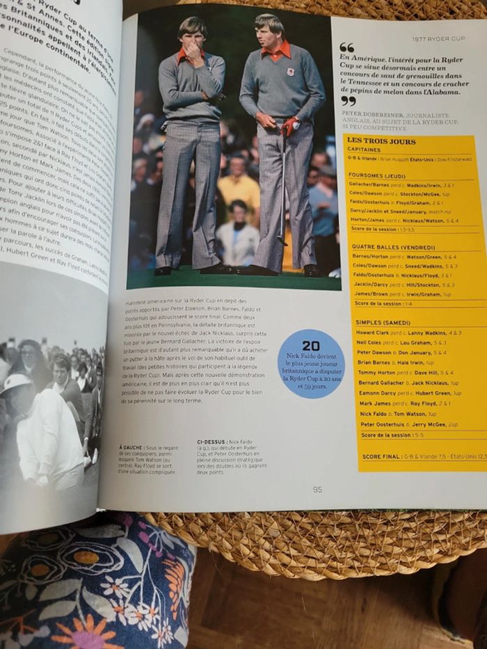 L’HISTOIRE INTÉGRALE DE LA PLUS GRANDE COMPÉTITION DE GOLF La Ryder Cup est l’une des plus grandes compétitions sportives au monde. Tous les deux ans, les meilleurs golfeurs venus des États-Unis et d’Europe s’affrontent lors d’un match par équipes qui met les joueurs sous une pression irrespirable et suscite la passion débordante du public. Chaque Ryder Cup est unique. Richement illustré, ce livre retrace l’histoire de la rivalité exceptionnelle entre les États-Unis et l’Europe. Fourmillant d’anecdotes, il déroule tous les moments importants qui ont fait la Ryder Cup, des instants décisifs aux déclarations les plus majeures en passant par une sélection de photographies historiques. Il met ainsi en valeur les plus grands joueurs et capitaines ayant façonné le mythe de la Ryder Cup. Neuf avec étiquette Envoi sous 24h_48h
