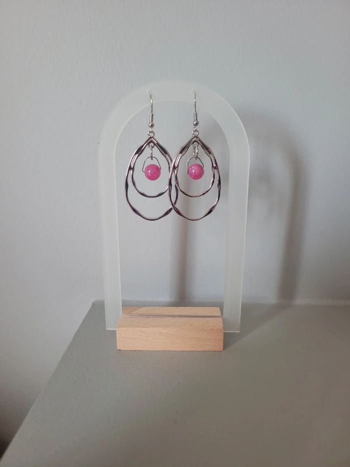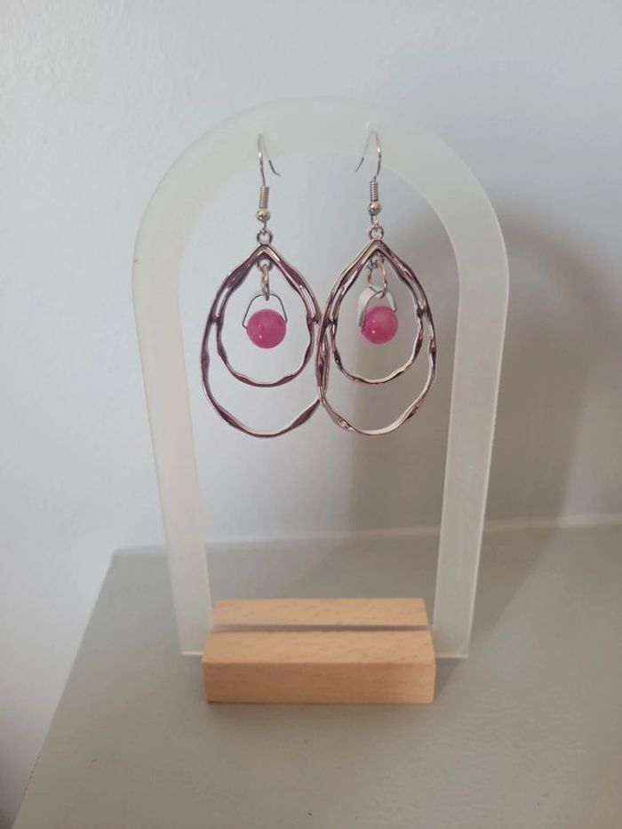 Boucles d oreilles acier inoxydable silver. Hyppoallergenique. Tourmaline pasteque. (Même modele en clips (dans mon dressing). Fait main. Oreilles percées. Modèle unique. Envois ous 24h_48h.