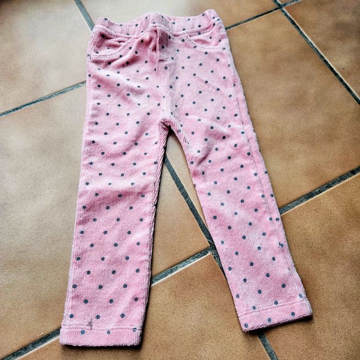 Lot composé d'un pantalon rose à pois gris In extenso neuf, juste lavé et d'un jogging bleu marine Kiabi qui a servi. 🎁 N'hésitez pas à faire des lots pour bénéficier de réductions.