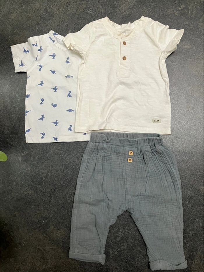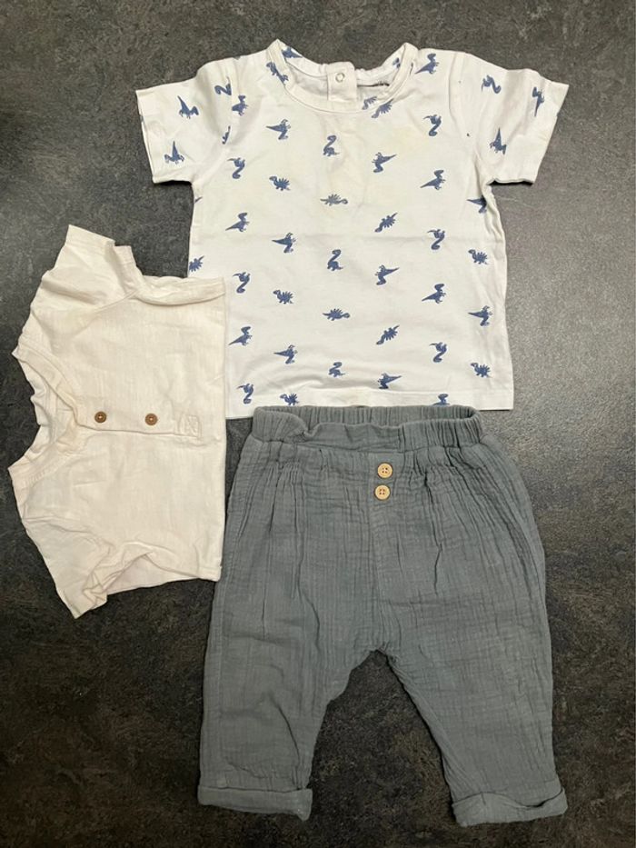 Ensemble 3 pièces garçon 12mois gaze de coton - photo numéro 1