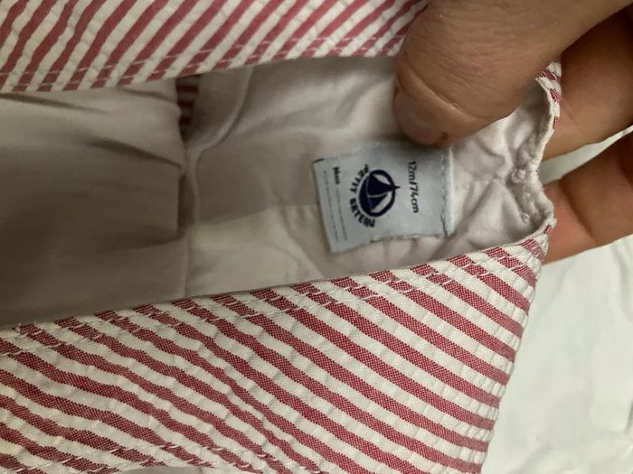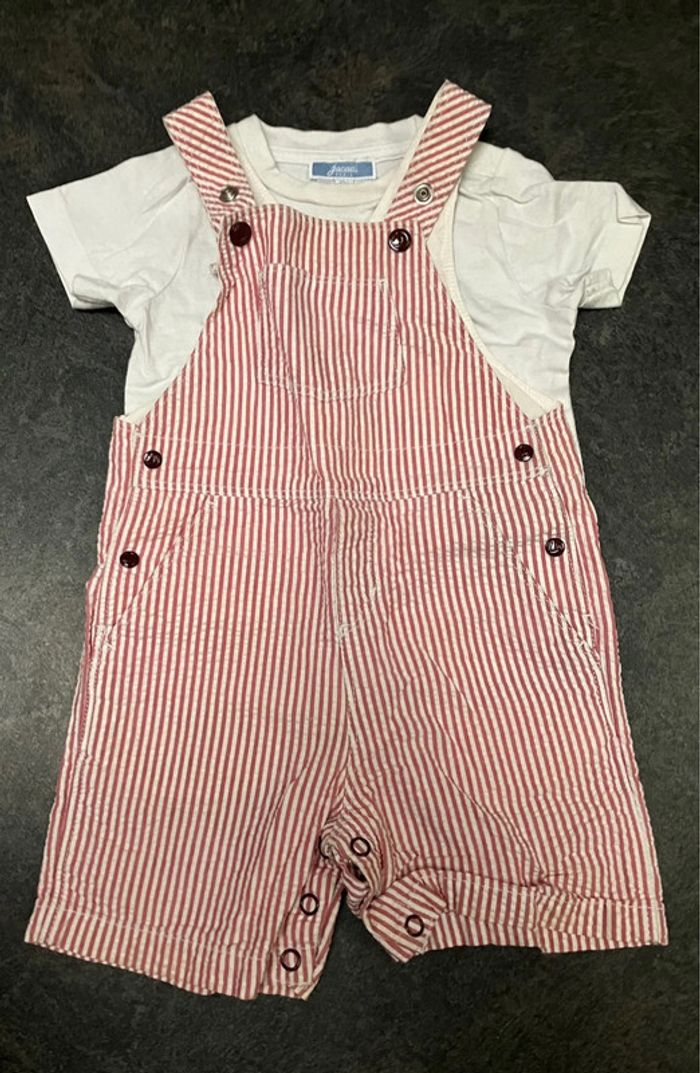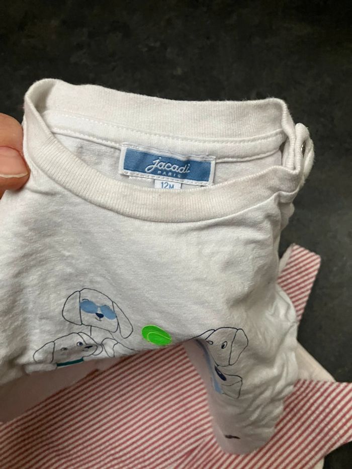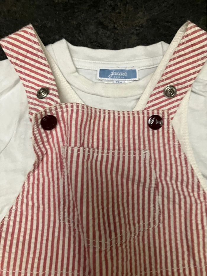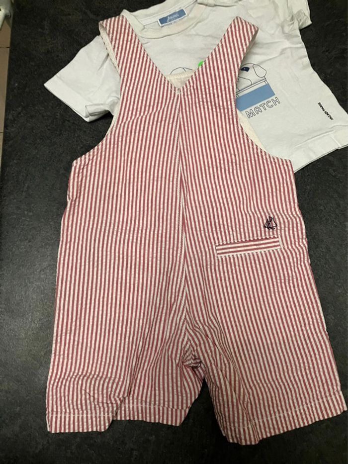 Salopette petit bateau 12 mois en coton gaufré T shirt jacadi 12 mois ( légère décoloration au col ) Le tout en très bon état