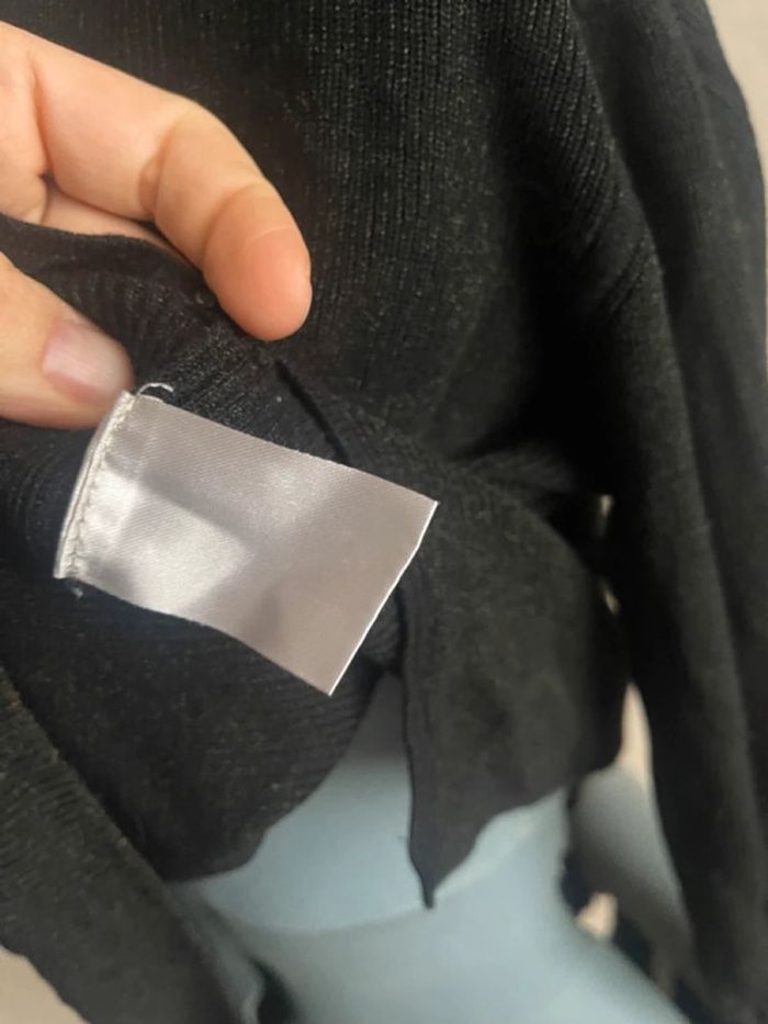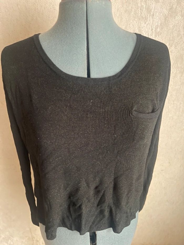 Très jolie pull manches longues Matière plombante fluide à fines côtes Noir avec légère brillance PARFAIT ETAT comme neuf etiquette coupé en partie Pas d'étiquette compo