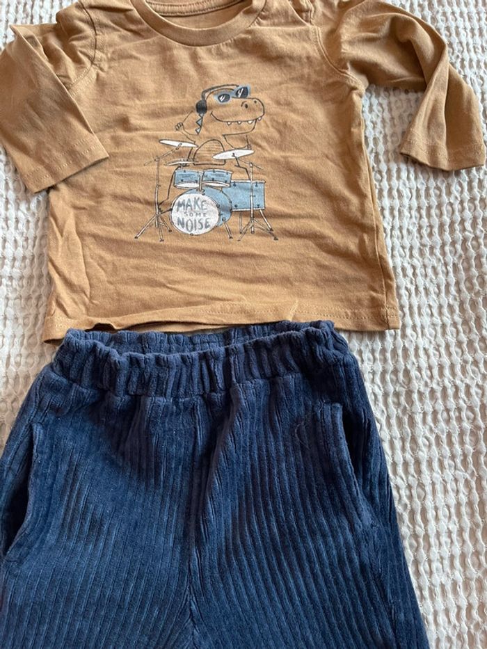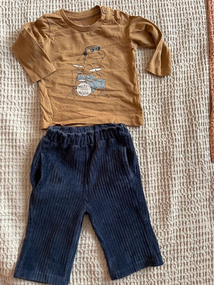 Pantalon velours la redoute élastique taille coupe ample T shirt coton 3 mois Gemo Très bon état