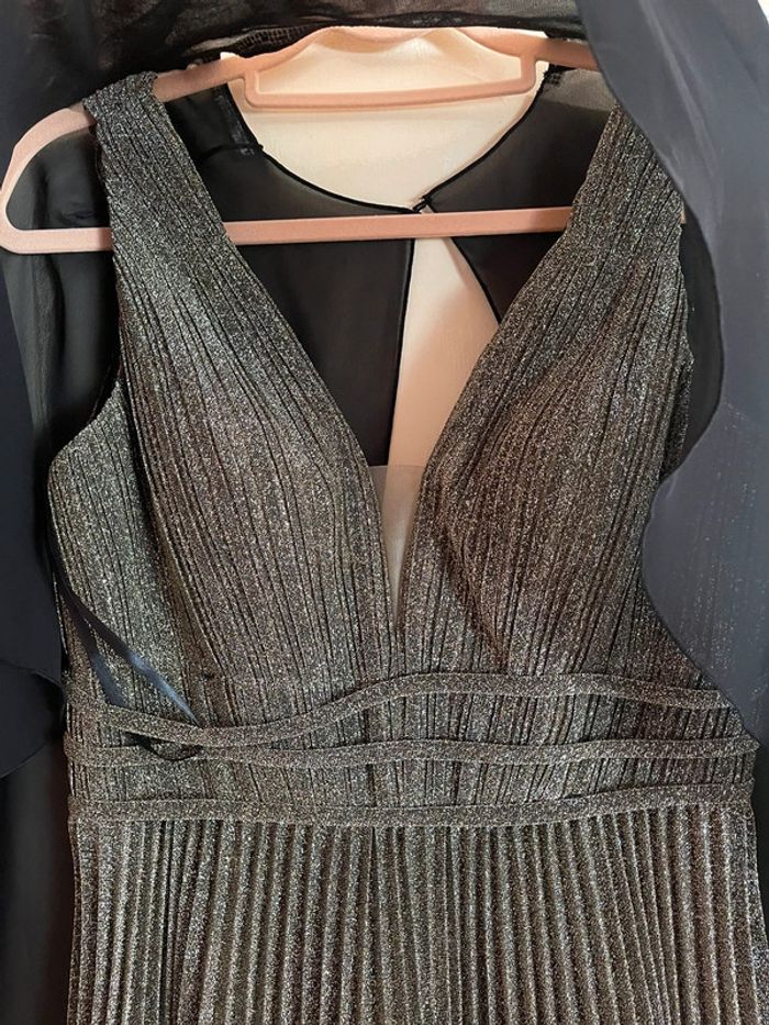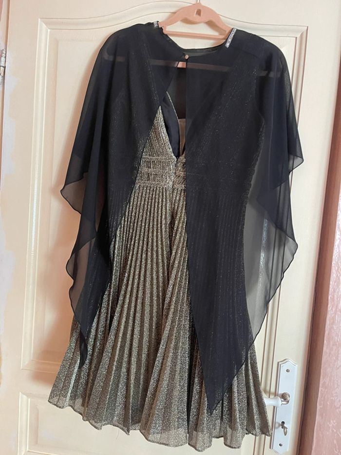 Robe habillé chic courte plisse doré - photo numéro 2
