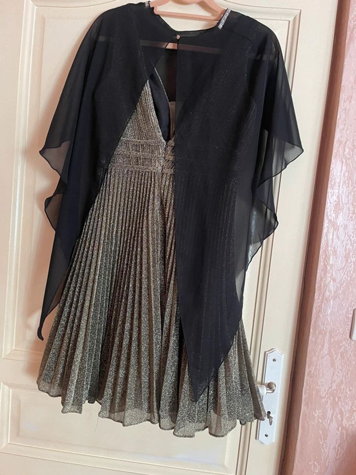 Robe habillé chic courte plisse doré - photo numéro 1