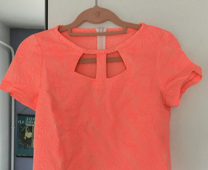 Top corail en jacquard fin Mélange 53%coton Taille 0 correspond à un 36 Coupe droite