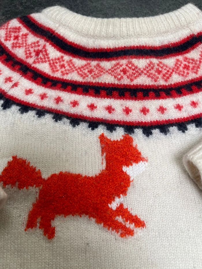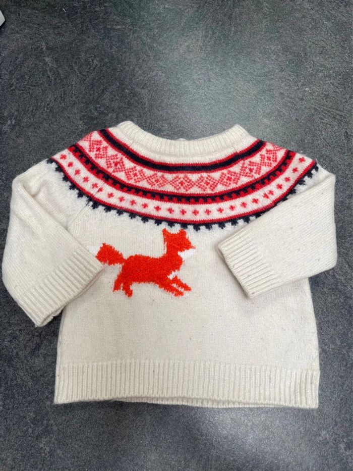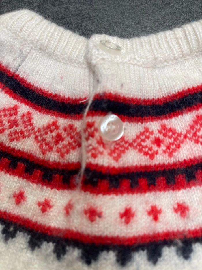 Pull jacquard 50%laine A un peu rétréci note 6mois mais taille petit soit3mois Maille douce