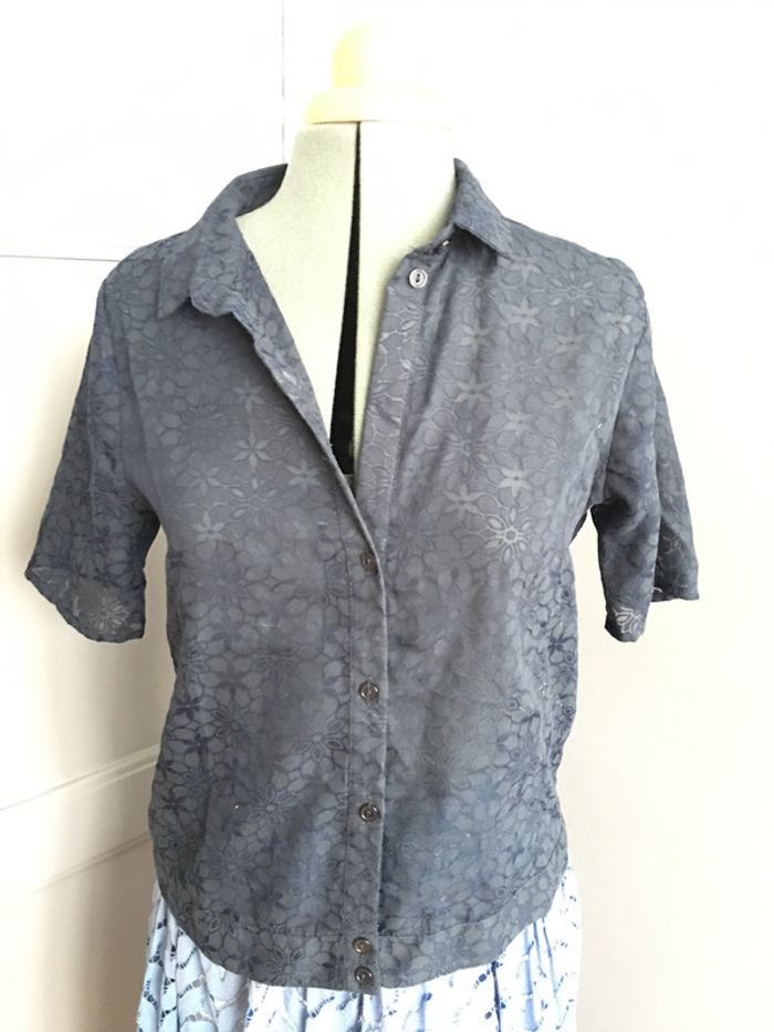 belle blouse ajouré fleurs ton sur ton dans le tissage avec jeu de transparence taille bien forme droite
