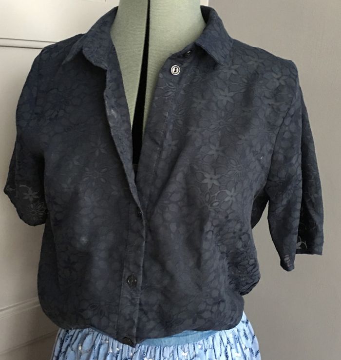 Blouse marine matière ajourée - photo numéro 1