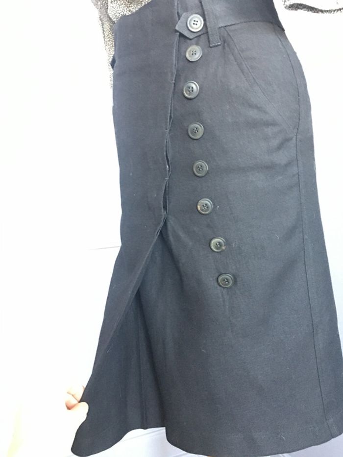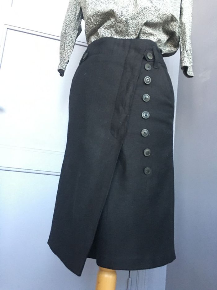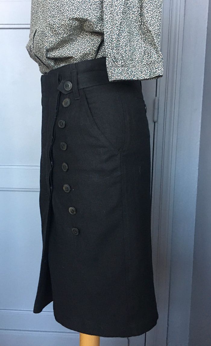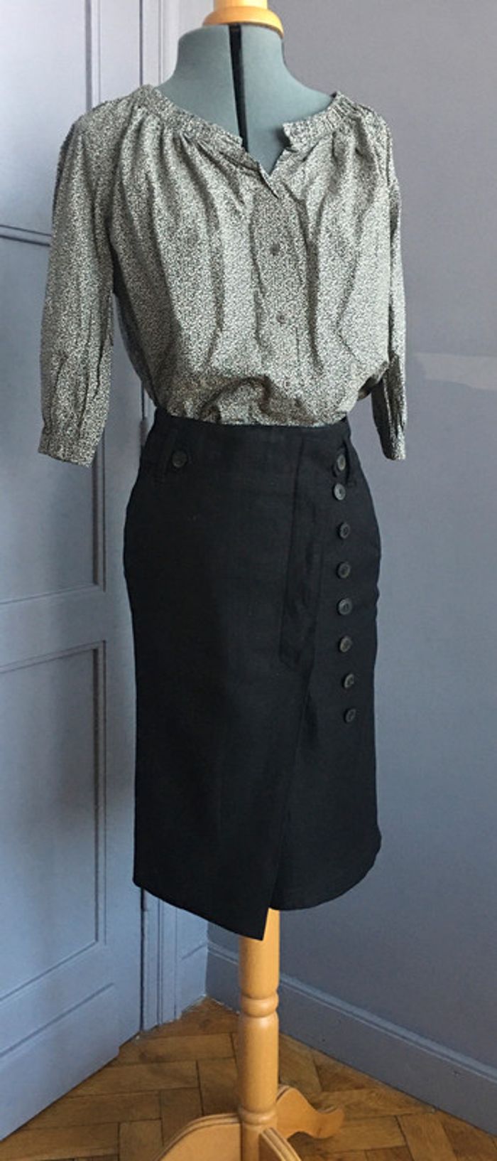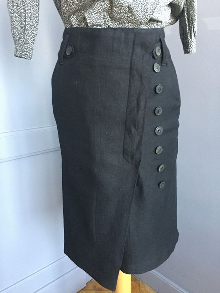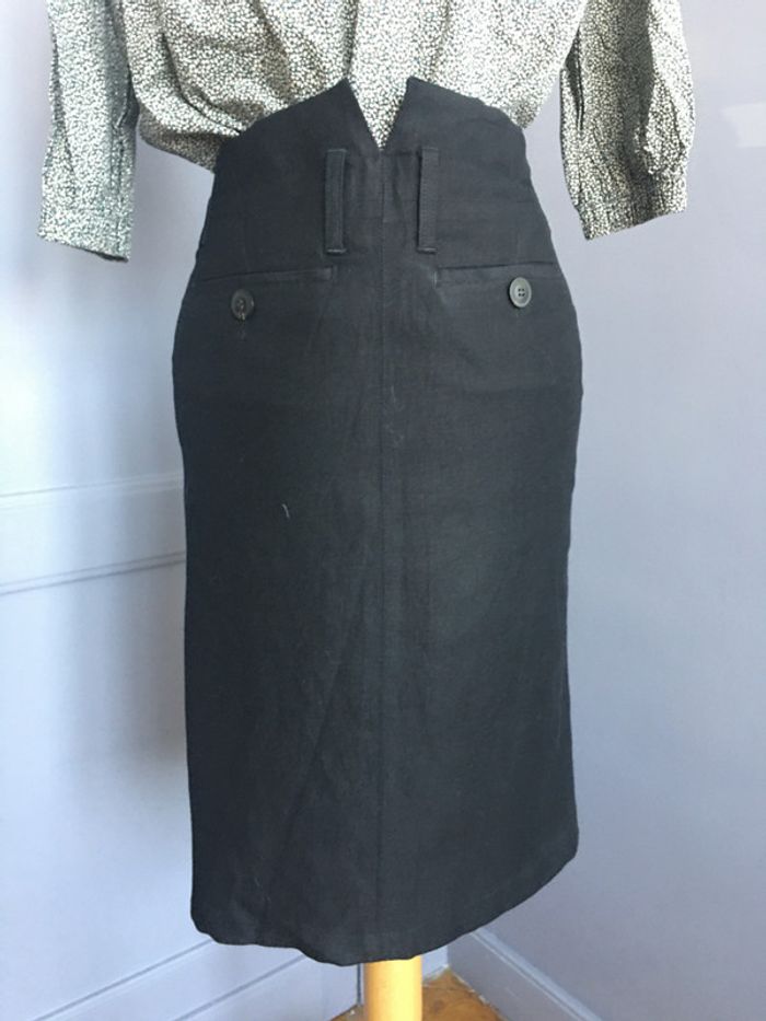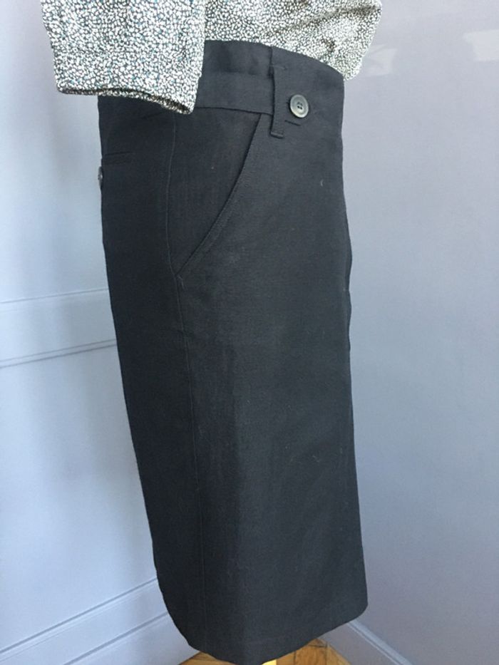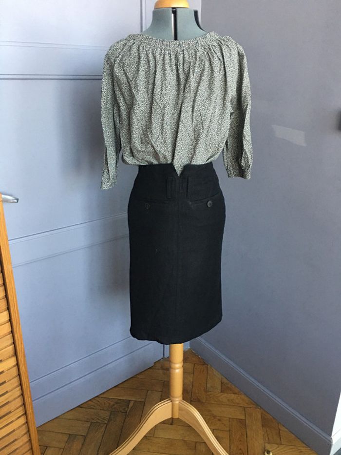 très belle jupe ajusté mélange lin et line 53%lin 47 laine largeur taille par deli 40cm plus devant longueur totale 60cm longueur genoux poches côtés 34/36