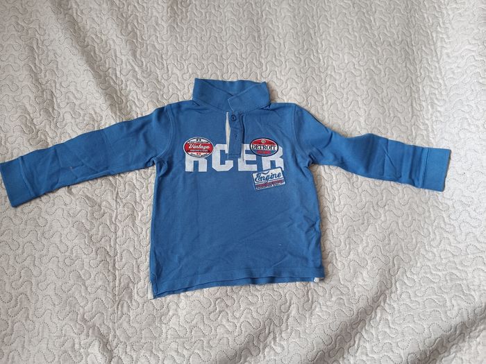 Polo Garçon Manches Longues Bleu avec inscription sur le devant Taille 6 ans /116 cm Tape à l' Oeil TAO Bon état