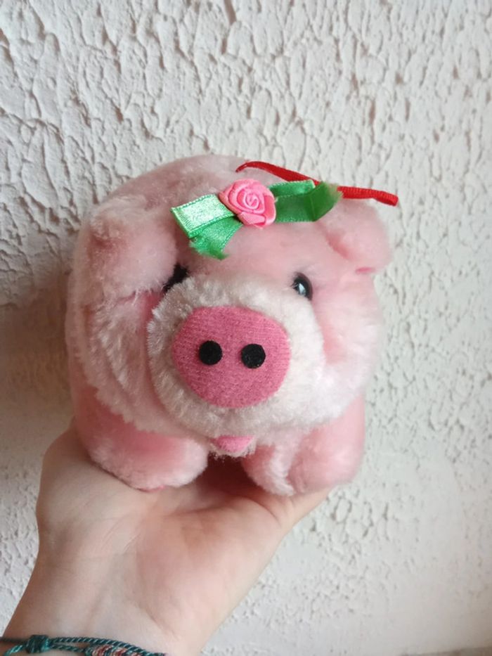 Jolie Petite peluxlche cochon - peut s'accrocher par la tete #peluche #cochon #pig #cerdo #cochino #puerco #puerquito #niño #enfant #kid #deco #animal #pink #rose #farm #granja #joli #ferme #petit #vintage #jouet #dafnezenfant #dafnezjouet #dafnezdeco #dafnezdivers