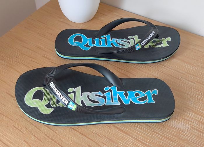 Tongs de la marque QUICKSILVER - Imprimé - Bride en caoutchouc - Semelle en mousse - Pointure : 36/37 ❌ Excellent état (comme le montre les photos) #kat02600chaussure36 #kat02600chaussure37 #tong36 #tong37 #tongquicksilver36 #tongquicksilver37 #quicksilver