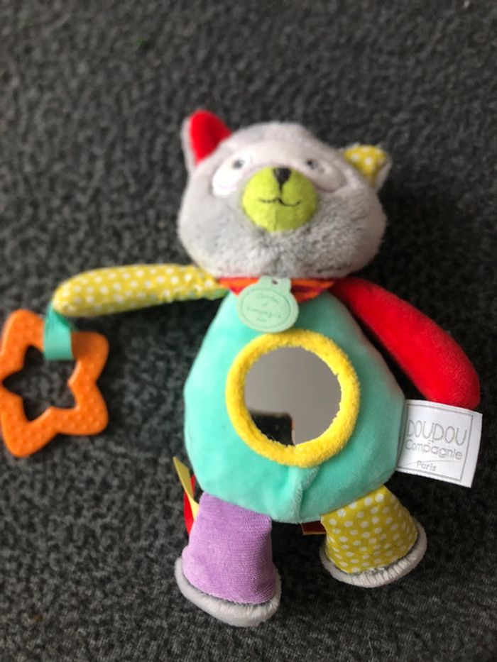 Doudou avec miroir a quelque trace usure dessus . Doudou sensoriel.