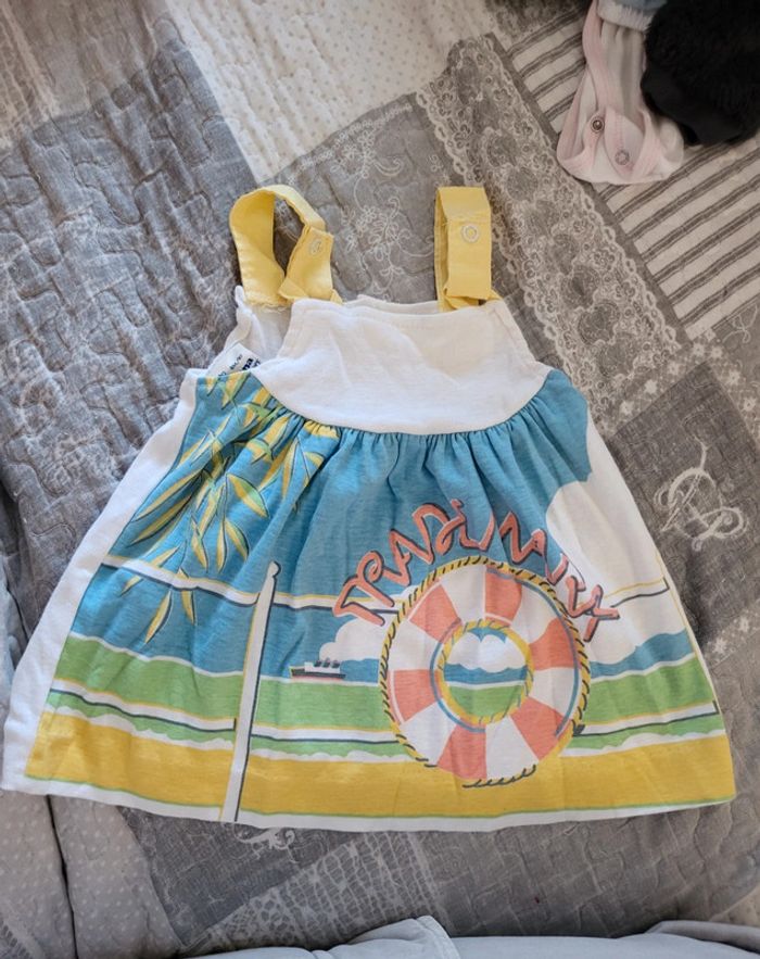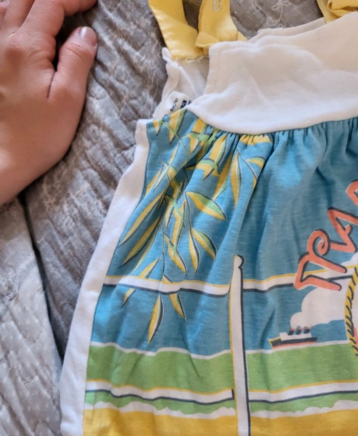 Robe en coton vintage dessin style plage, bretelle réglables en taille 6 mois, bon état. #floreteddy_taille6mois