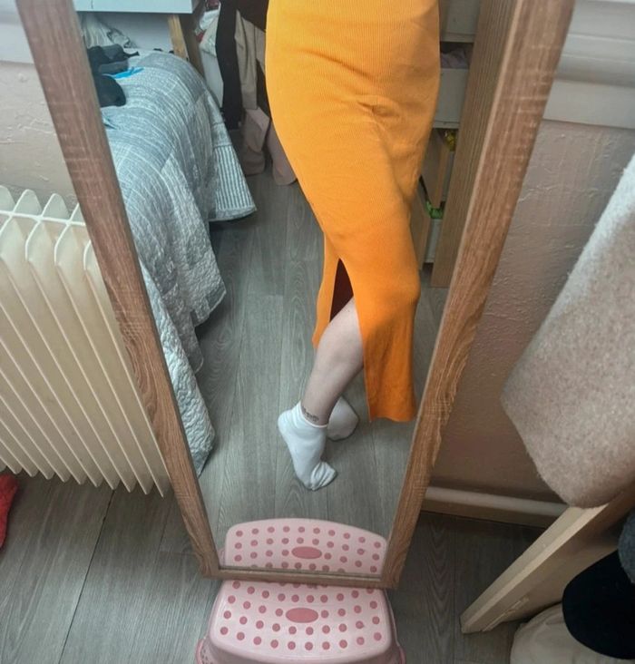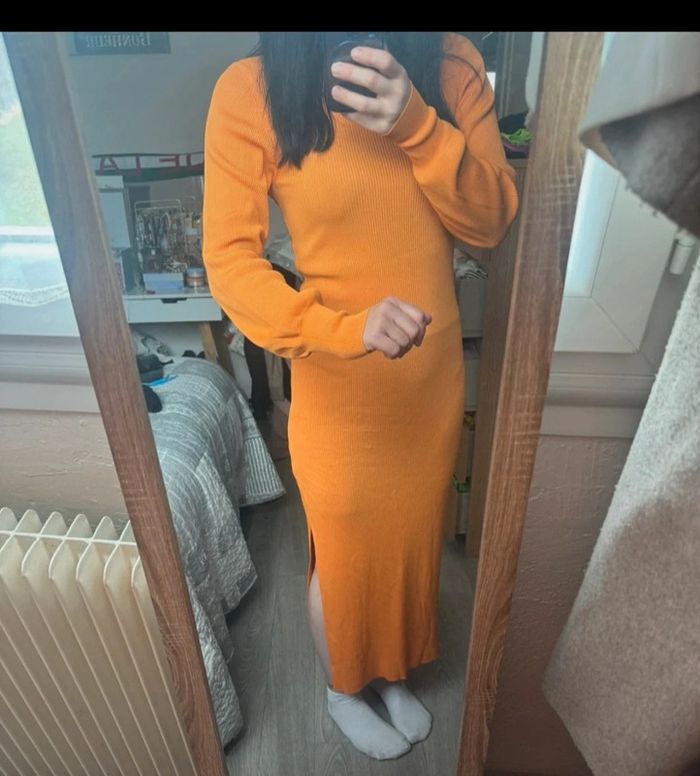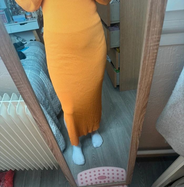 Robe longue côtelé moulante orange de chez Zara en taille M, porté une fois. Longueur 135 cm #floreteddy_taille38