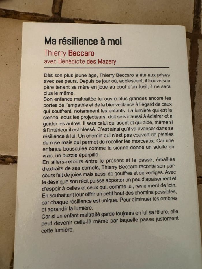 Livre « ma résilience à moi » de Thierry recarro avec Bénédicte des Mazery . Très bon état . #floreteddy_livre