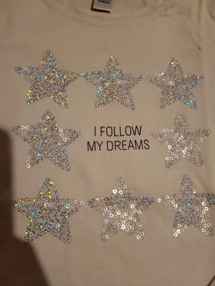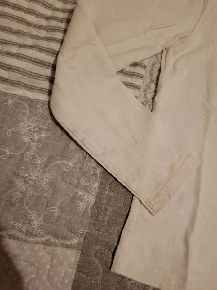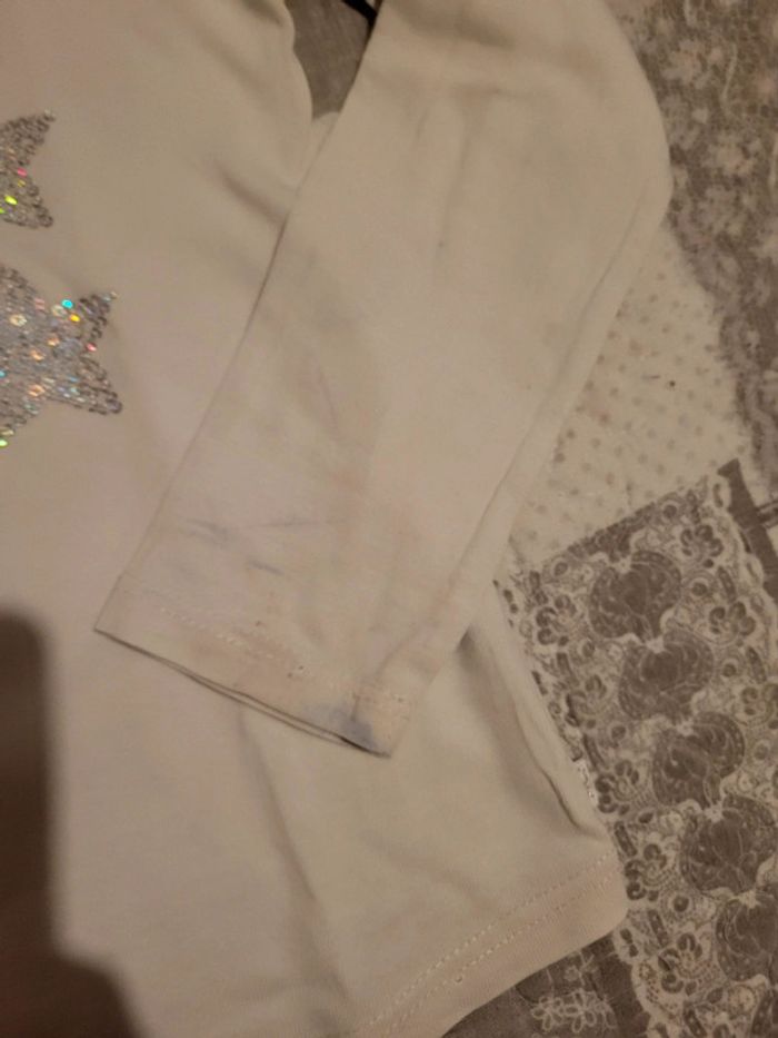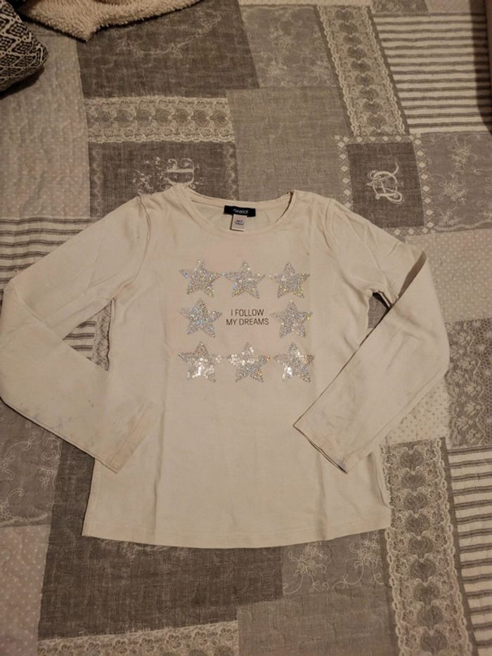 Tee shirt blanc okaidi étoile en sequins en taille 6 ans, taché aux manches. #floreteddy_taille6ans