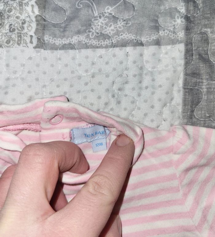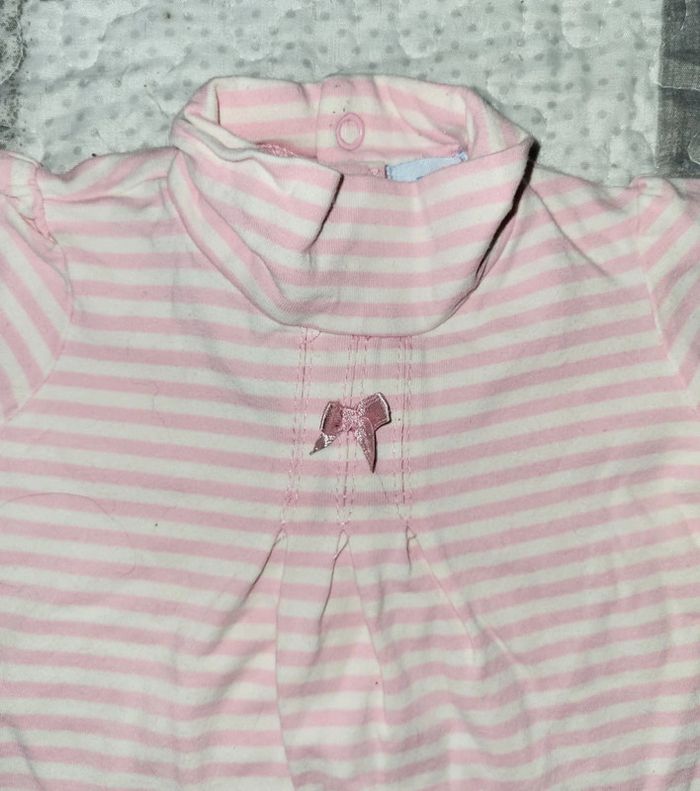 Haut à col roulé à manches longues à rayures blanc et rose pâle de marque Tex baby en taille 12 mois. Très bon état. #floreteddy_taille12mois