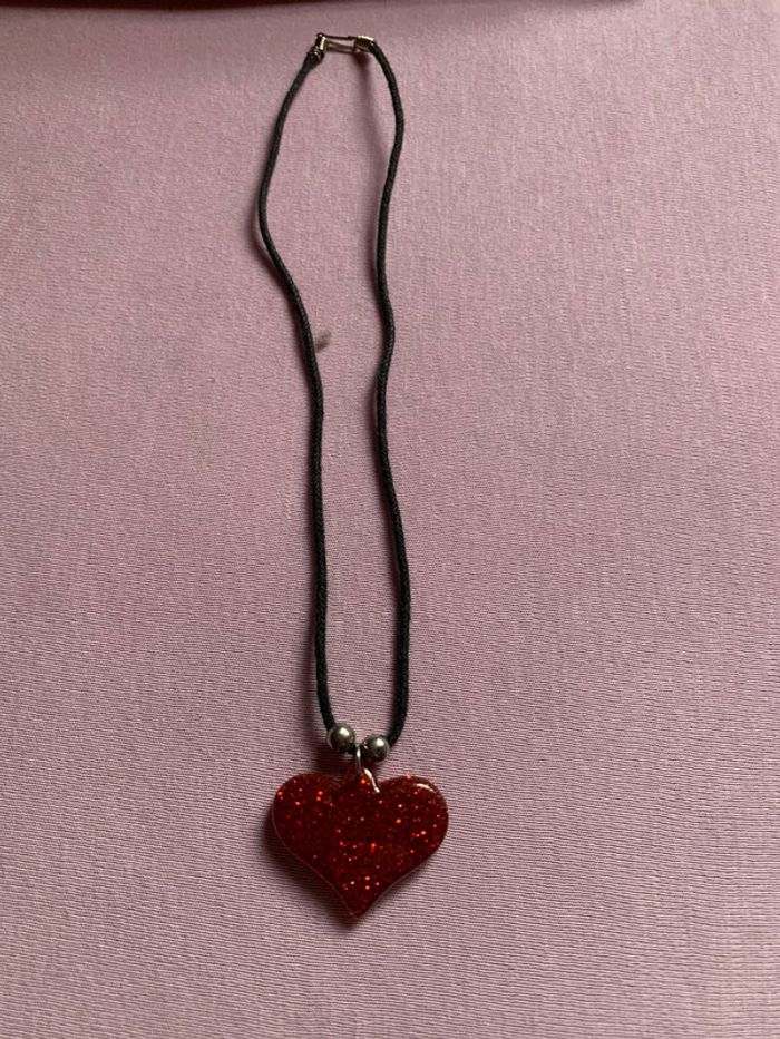 #collier #coeur #rouge #paillettes #faitmain #faitmaison
