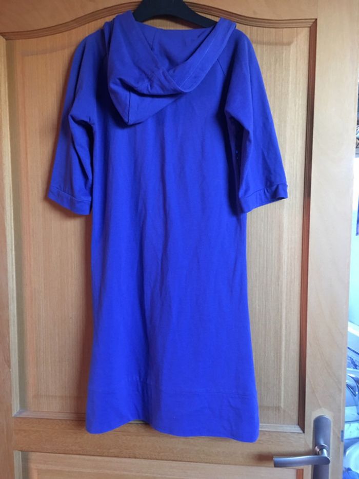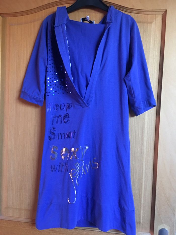tunique bleu élite avec strass et capuche. manches aux coudes.
