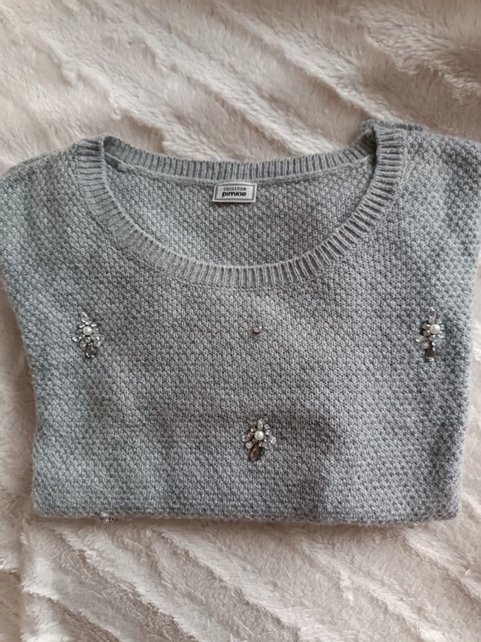 Pull gris strass - neuf sans étiquette - photo numéro 1