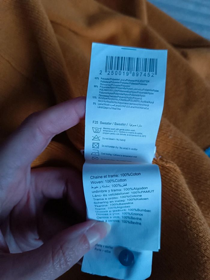 Magnifique pull chemise ocre avec strass - taille M - Neuf - photo numéro 6