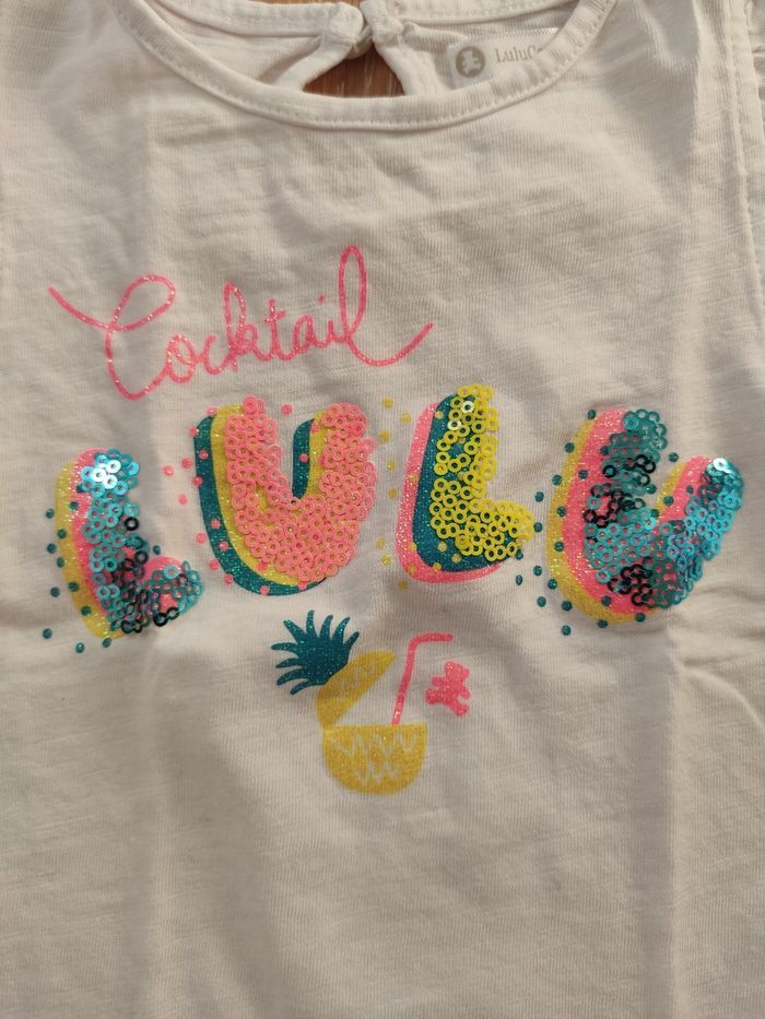 Tee-shirt manches courtes Lulu Castagnette, porté deux fois. Taille 12 mois, mais taille petit.