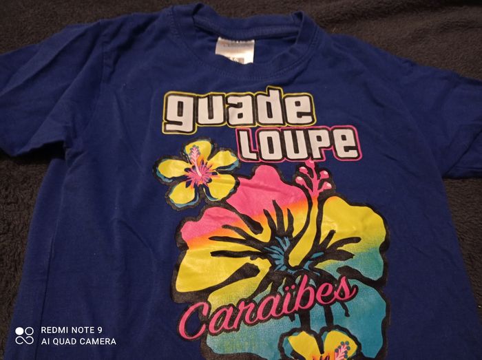 Tee shirt bleu fleuri de la Guadeloupe 5/6 ans