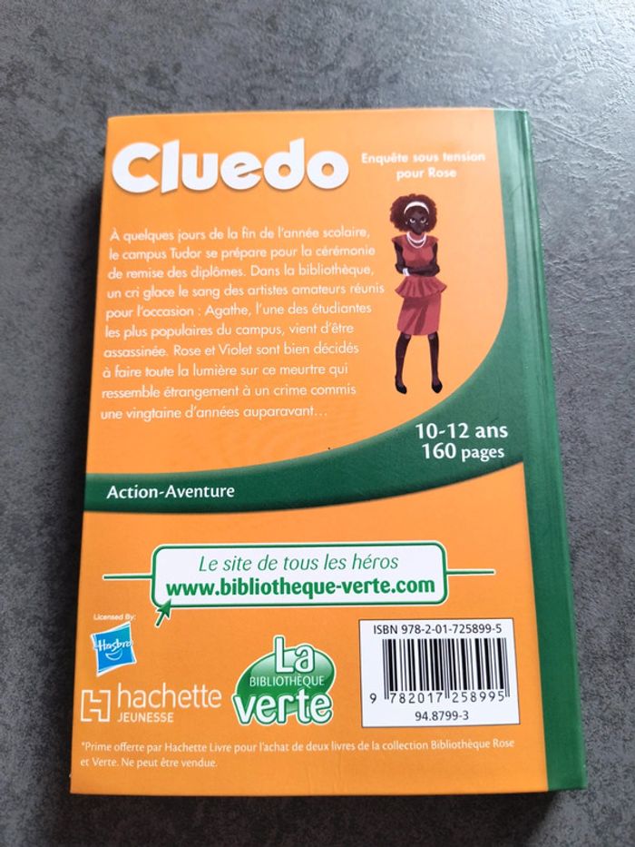 Vends livre de poche la bibliothèque verte. Cluedo, enquête sous tension pour rose. En excellent état.