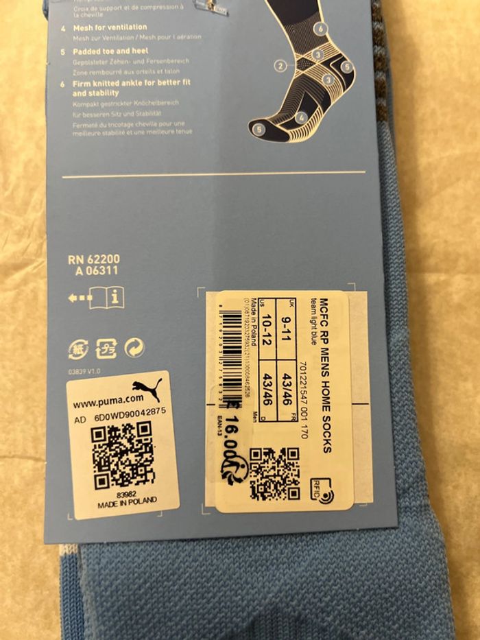 Chaussettes de foot Puma, équipe Manchester City taille 43/46 authentique neuf - photo numéro 5