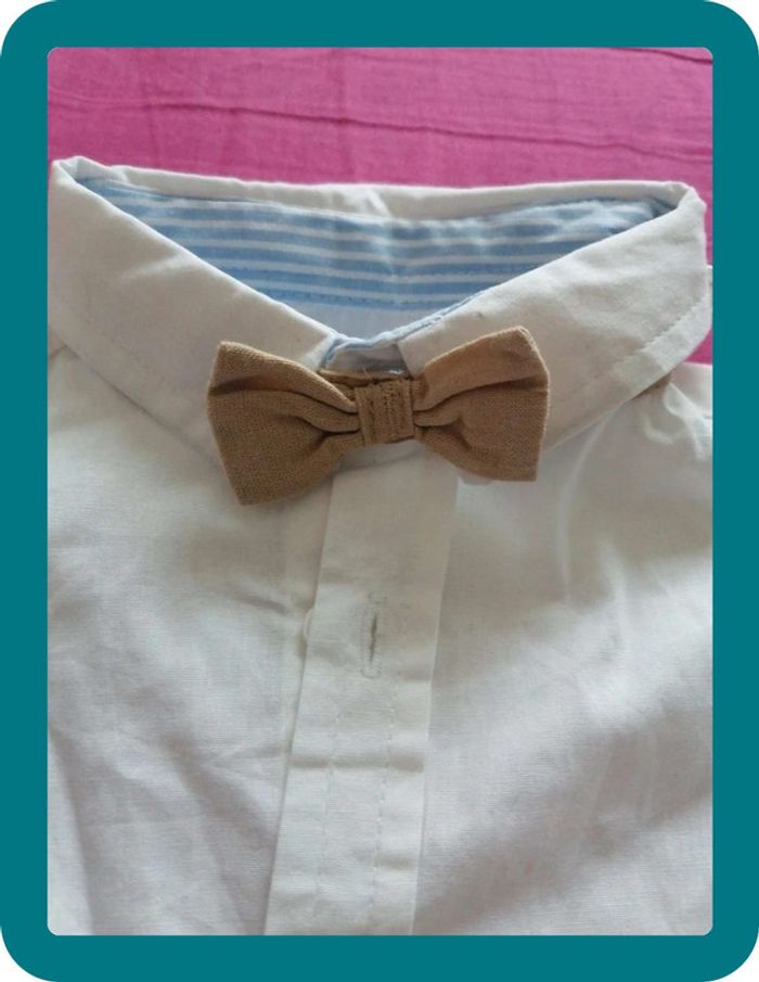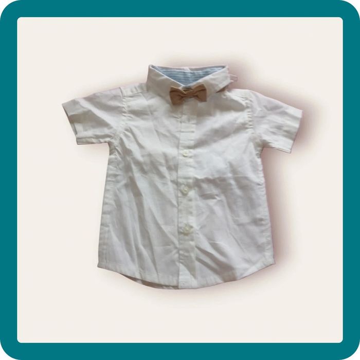 Chemise à manches courtes en très bon état. Cérémonie ou autre événement. Avec nœud papillon. Influx. 6 mois. (coordonnée avec short à bretelles dans mon dressing). #manue57260garcon6mois