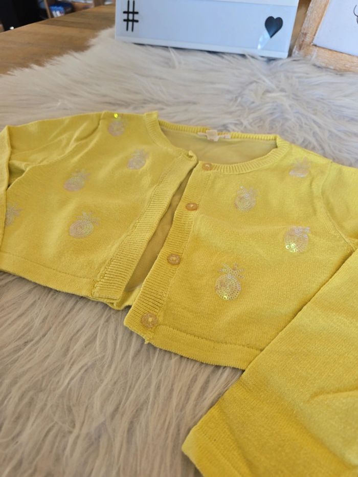 Gilet boléro jaune avec motif ananas en sequins Taille 4 ans Marque DPAM Très bon état. #4ansfillebaba18bb