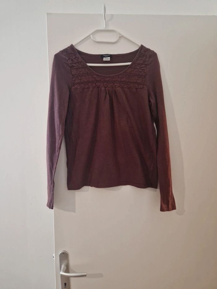 Pull femme fin manche longue col rond violet foncé 100% coton  T38-40 TBE la redoute - photo numéro 3