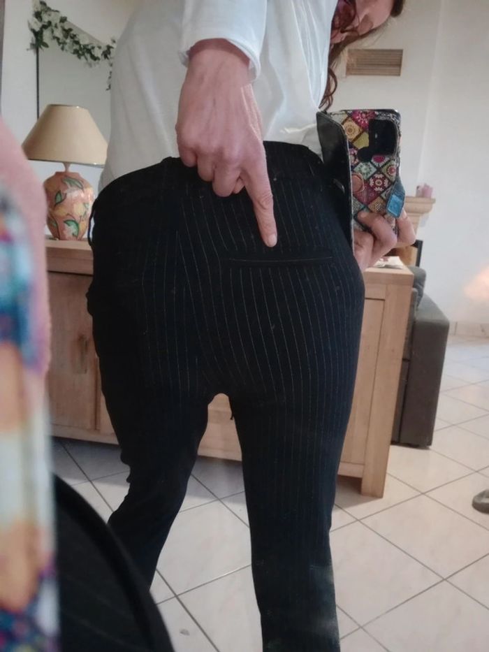 Pantalon classe femme XS noir à rayures - photo numéro 3