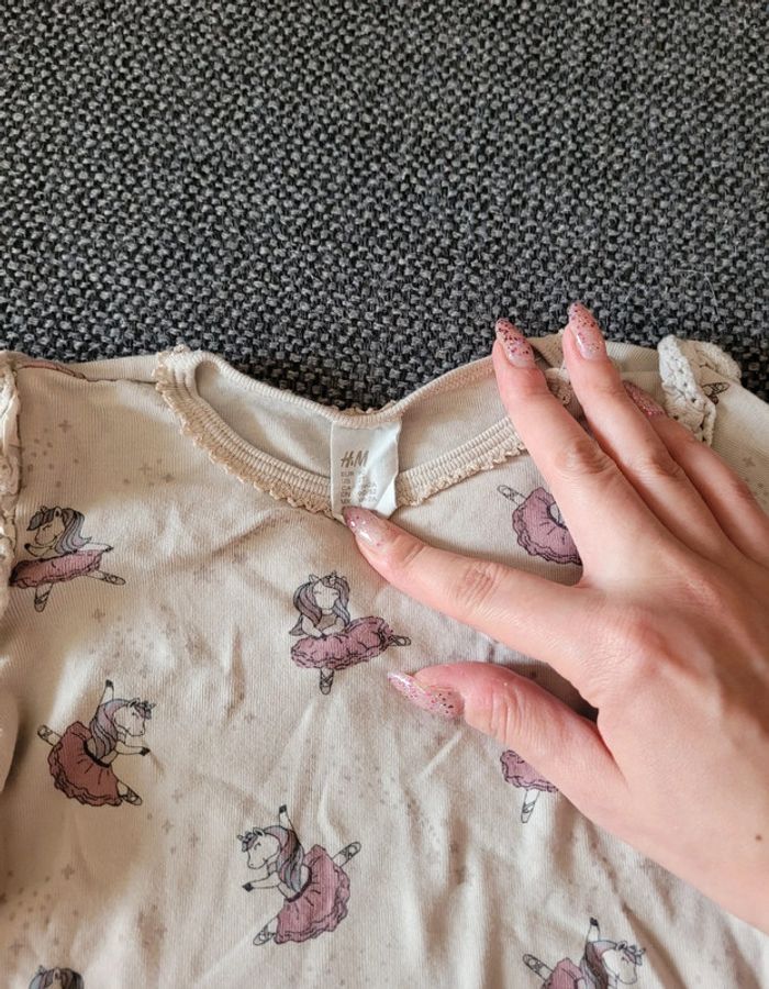 T-shirt à manches longues pour fille de marque H&M et de taille 92 cm (équivalent 24-36 mois dans d'autres marques) Beige à motifs licorne danseuse étoile et froufrous/volants aux épaules En coton Aucune tâche ni trou #mabi38780fille24mois #mabi38780fille36mois