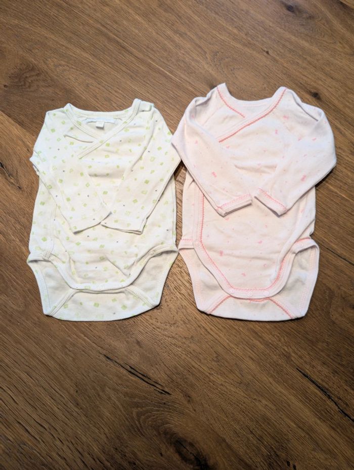2 bodies, Petit bateau et Canari baby, taille 3 mois. En très bon état.