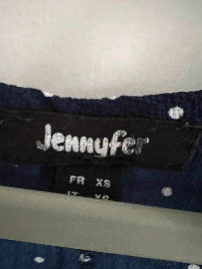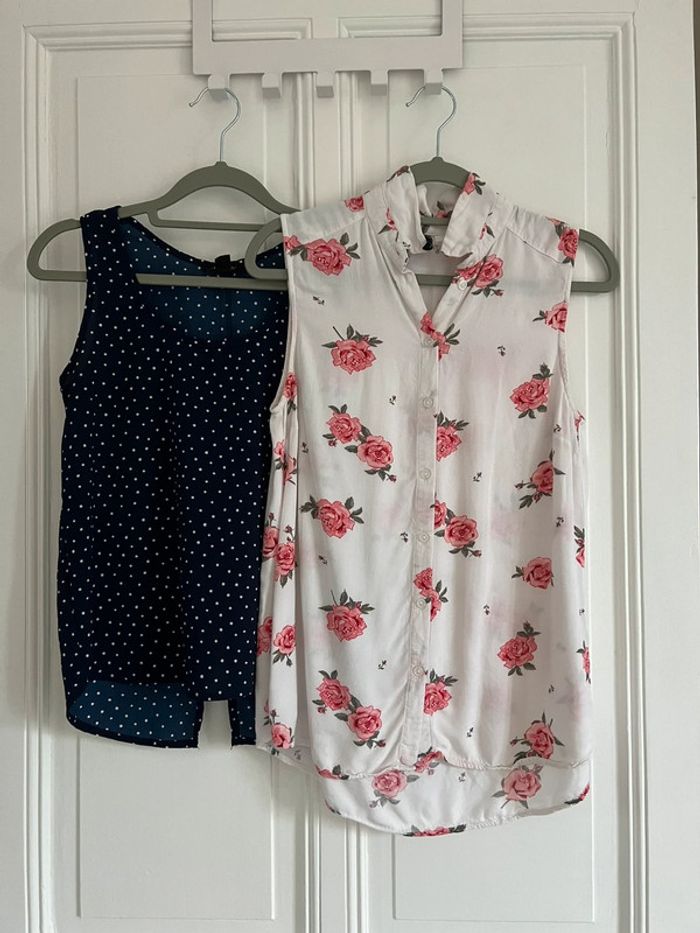 Lot de 2 débardeurs XS 1 blanc fleuri &M 1 marine à pois Jennyfer Tbe #lgtixs #lgtijennyfer #lgtihetm