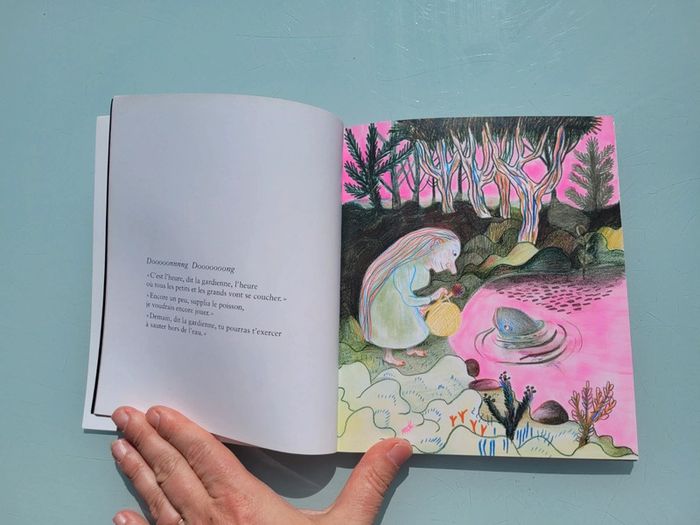 L'ÉCOLE DES LOISIRS COUVERTURE SOUPLE PETITES HISTOIRES DE NUITS « Raconte-moi trois histoires » demande Ourson à sa maman… Dooong Dooong, c’est l’histoire de la gardienne de la nuit qui sonne l’heure où les petits et les grands vont se coucher. « Je n’ai pas du tout sommeil », couine la petite hermine. « Couche-toi, dit la gardienne, et le sommeil t’attrapera. » Il y a aussi la grande aventure de Zhora, la petite fille à l’épée, qui cueille la plus belle mûre de toute la forêt pour sa maman. Et puis celle de Bo, ce petit être toujours vêtu d’un manteau, qui se balade à la recherche d’une miette de sommeil. « Maintenant, choisis ton étoile pour t’emmener jusqu’à demain », chuchote maman en bordant Ourson. Âge de lecture : 3-6 ans ~ 16,6x19.6 cm Très bon état Mes autres livres enfants : #livreenfantmooglou Mes autres école des loisirs : #lecoledesloisirsmooglou