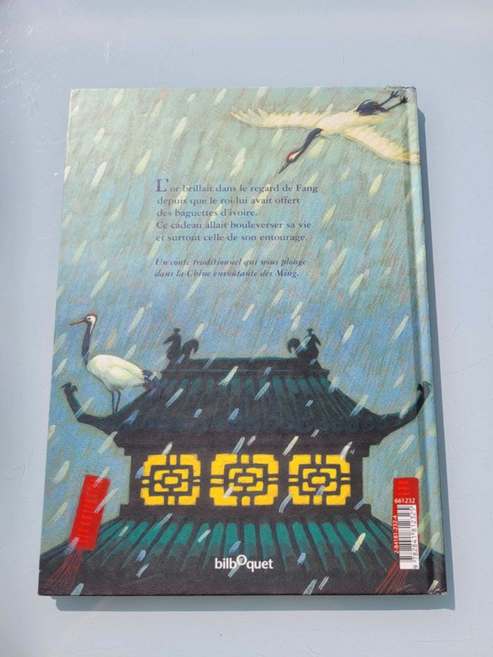 LES BAGUETTES D'IVOIRE EDITION BILBOQUET L'or brillait dans le regard de Fang depuis que le roi lui avait offert des baguettes d'ivoire. Ce cadeau allait bouleverser sa vie et surtout celle de son entourage. Un conte traditionnel qui nous plonge dans la Chine envoûtante des Ming. Dimensions ‎23.5 x 34 cm En très bon état Mes autres livres enfants : #livreenfantmooglou