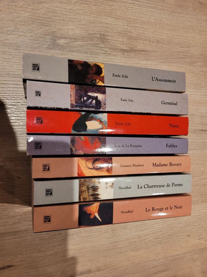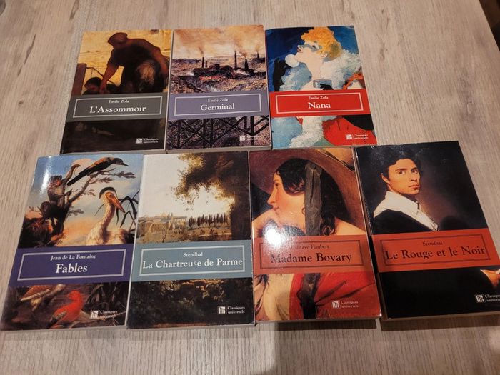 Lot de 7 livres de poche collection Classiques Universels édition 2000 et 2001 . L'assommoir.Germinal.Nana.Fables.Le rouge et le noir.La chartreuse de Parme.Madame Bovary.