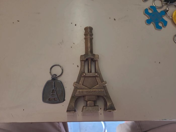 Il mesure 14cm de hauteur et 7.2cm à la base. Donne avec 1 porte clefs de la caisse d'épargne d'Autun, agence du Creusot.
