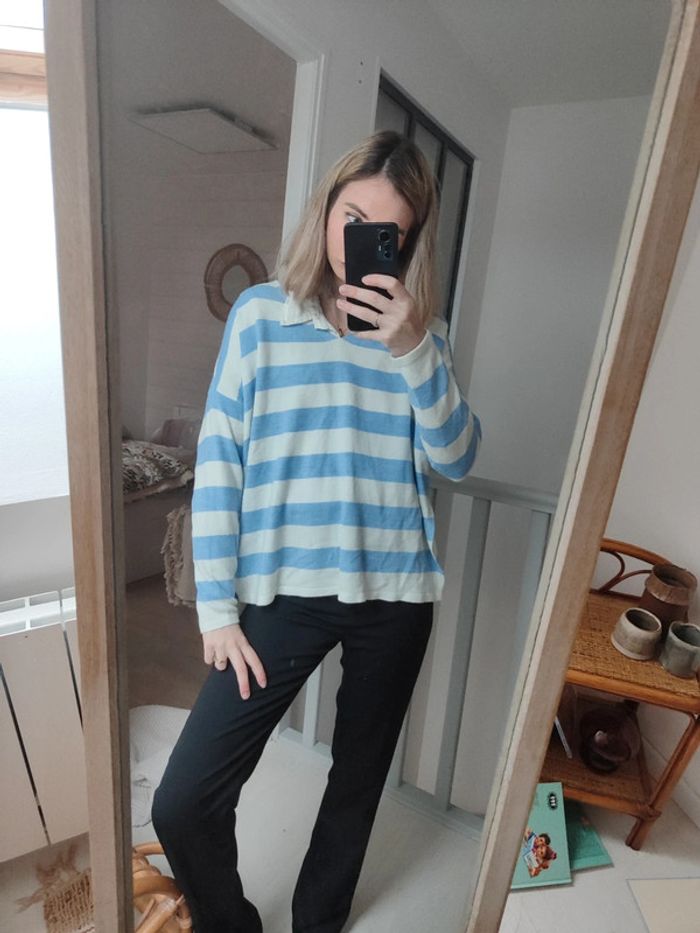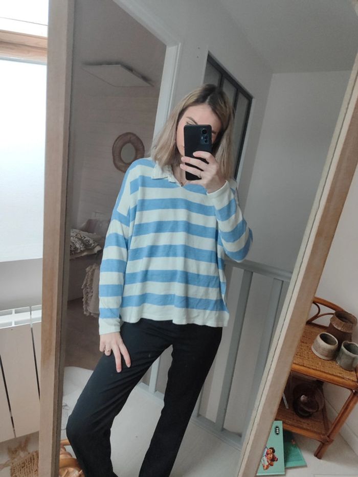 Pull large coupe loose marinière Taille M Boutique indépendante
